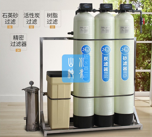 用于地下水、井水處理,對(duì)預(yù)處理有較高要求的客戶,一級(jí)過濾石英砂過濾器,它是利用石英砂作為過濾介質(zhì),在一定的壓力下,把濁度較高的水通過一定厚度的粒狀或非粒的石英砂過濾,有效的截留除去水中的懸浮物、有機(jī)物、膠質(zhì)顆粒、微生物、氯、嗅味及部分重金屬離子等,最終達(dá)到降低水濁度、凈化水質(zhì)效果的一種高效過濾設(shè)備。二級(jí)過濾活性炭過濾器主要用于去除水中有機(jī)物,膠體硅,余氯等,對(duì)臭味,色度,重金屬離子的吸附能力很強(qiáng)。飲料行業(yè)選用凈水炭,可改善產(chǎn)品口感。三級(jí)過濾全自動(dòng)軟水器是一種運(yùn)行和再生操作過程全自動(dòng)控制的離子交換軟水器,利用鈉型陽離子交換樹脂去除水中鈣鎂離子,降低原水硬度,以達(dá)到軟化硬水的目的。四級(jí)過濾精密過濾器采用PP棉、熔噴等不同材質(zhì)作