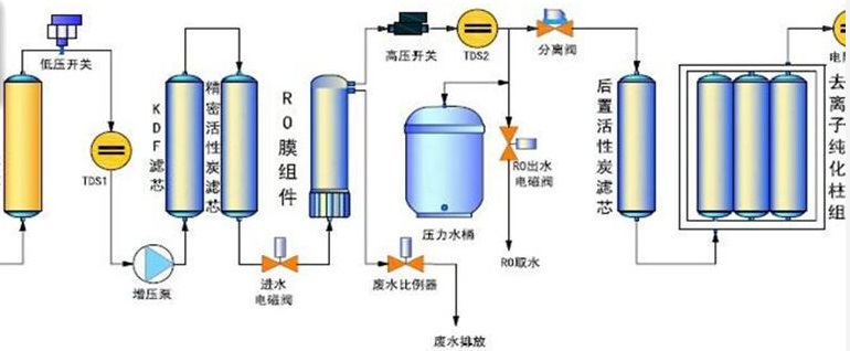 1、采用逆滲透膜(RO膜),運用目前國際上最先進的逆滲透技術工藝制備純水;